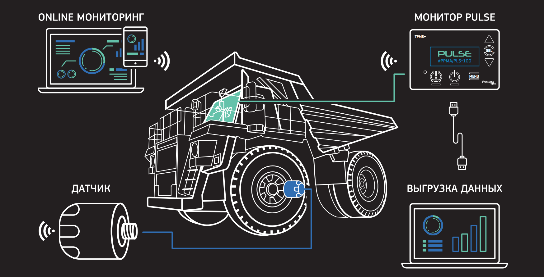Система контроля за давлением и температурой в шинах PressurePro Система контроля за давлением и температурой в шинах PressurePro поколения Pulse устанавливается на жесткорамные, шарнирно-сочлененные карьерные самосвалы грузоподъемностью от 30 до 450 тонн, фронтальные погрузчики, грейдеры, шахтные самосвалы, погрузо-доставочные машины (ПДМ) и прочая колесная техника в основной и вспомогательной технологии на открытых и подземных выработках.