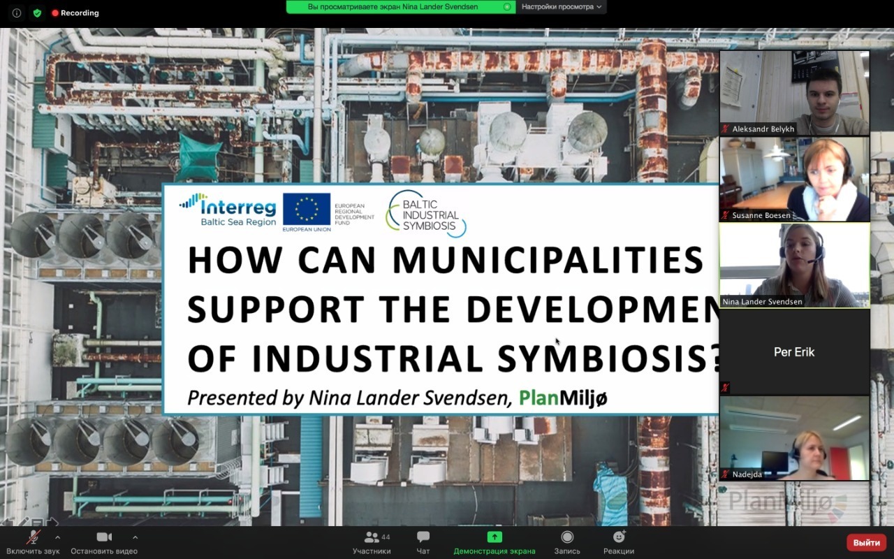 On November 25, an online meeting of the Industrial Symbiosis Council was held. # nbsp; The theme of the Council was the issue of the contribution of municipalities to the development of industrial symbiosis. Council members discussed the report prepared by # nbsp; PlanMiljø, # nbsp; IVL Swedish Environmental Research Institute # nbsp; and # nbsp; Orkdalsregion # nbsp; "How municipalities support the development of industrial symbiosis." The report included such issues as the role of municipalities, land use planning, existing policies in the participating countries: Denmark, Finland, Sweden, Norway, Russia and Poland, waste management, business development. The report also includes successful cases for the development of industrial symbiosis with the participation of municipalities. # nbsp;